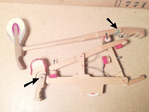 The other main grand action assembly is called the "Whippen". While not as bad, these "Flange Centers" (hinges) are also corrupted with this Verdigris condition |