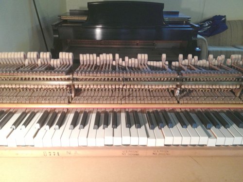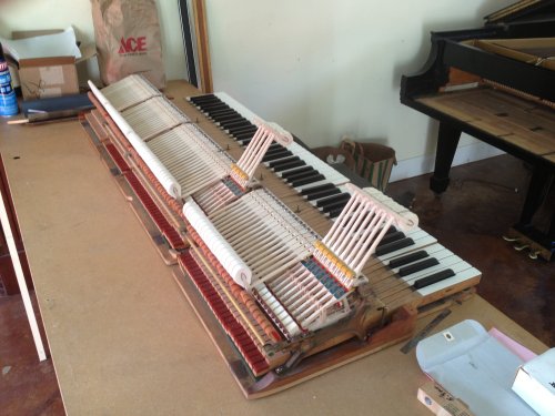 The action in the process of having the new action parts installed. In this case we are using Genuine New York Steinway Parts for replacement. |