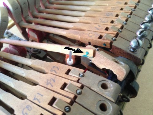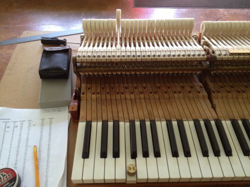The new action parts have been installed and the action is now ready for its preliminary "Regulation". That is, adjusting all the parts so that they perform to factory specifications. |