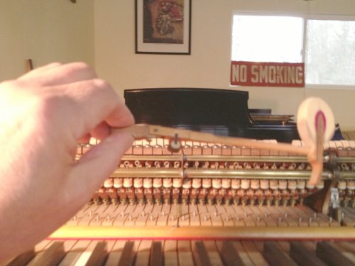 The preliminary action regulation has been perfomed with some tuning, and some "playing in" of the piano, and then some regulation touchup. |